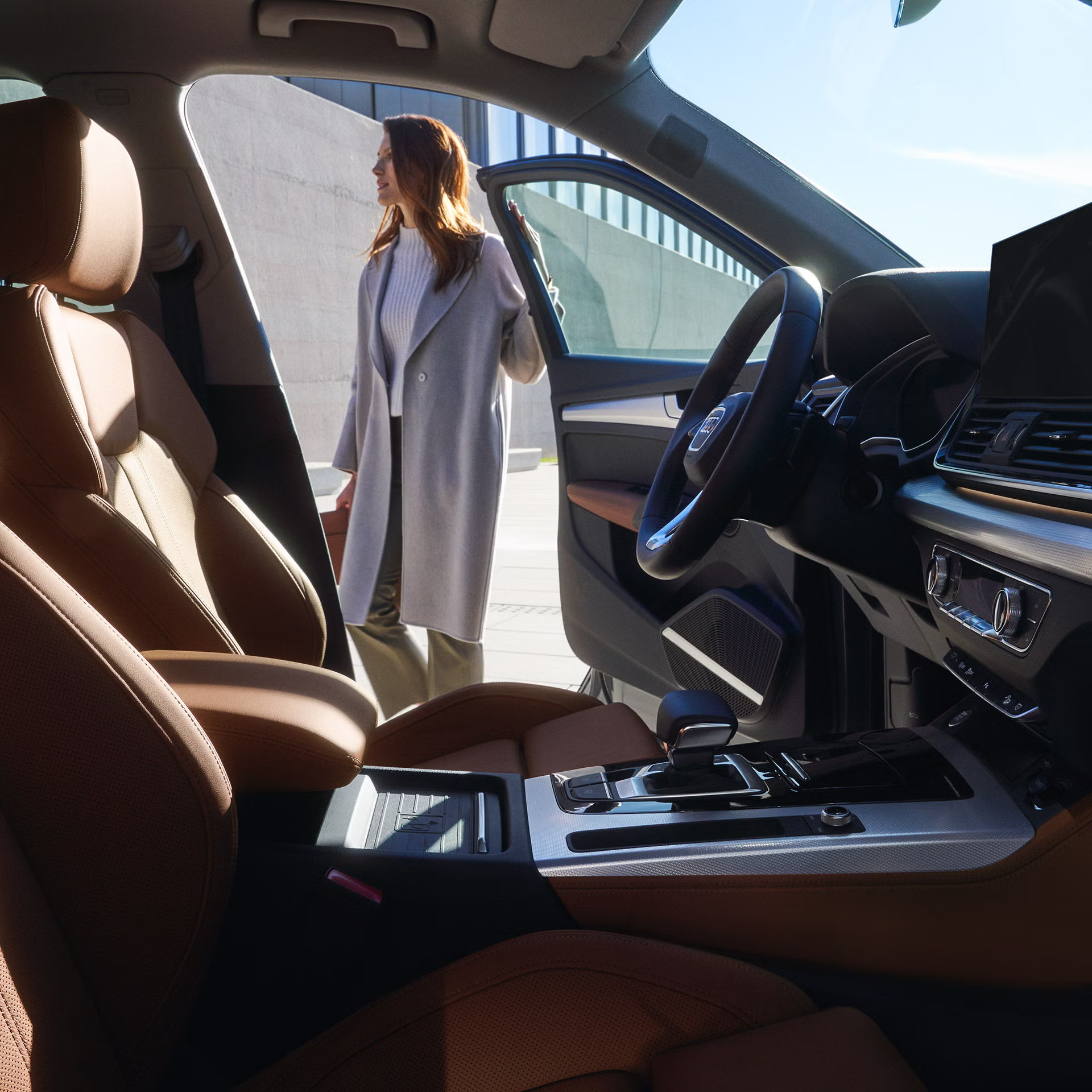 Chiều dài cơ sở rộng 2,82 m biến khoang nội thất trở thành một khái niệm không gian rộng rãi cho năm người bao gồm khoảng trần xe cũng như nơi để chân. Đường nhấn ngang trong thiết kế nội thất mang đến cảm giác ấn tượng về chiều rộng và sự thoải mái. Một dải ốp trang trí tinh xảo chạy dọc theo chiều rộng của bảng điều khiển tạo nên ấn tượng tổng thể về sự sang trọng. Trong bóng tối, ánh sáng nội thất đa sắc xung quanh là điểm nhấn hấp dẫn cho phiên bản Audi Q5 S-line. Ghế lái có chức năng ghi nhớ vị trí. Phiên bản S-line được trang bị ghế thể thao phía trước.