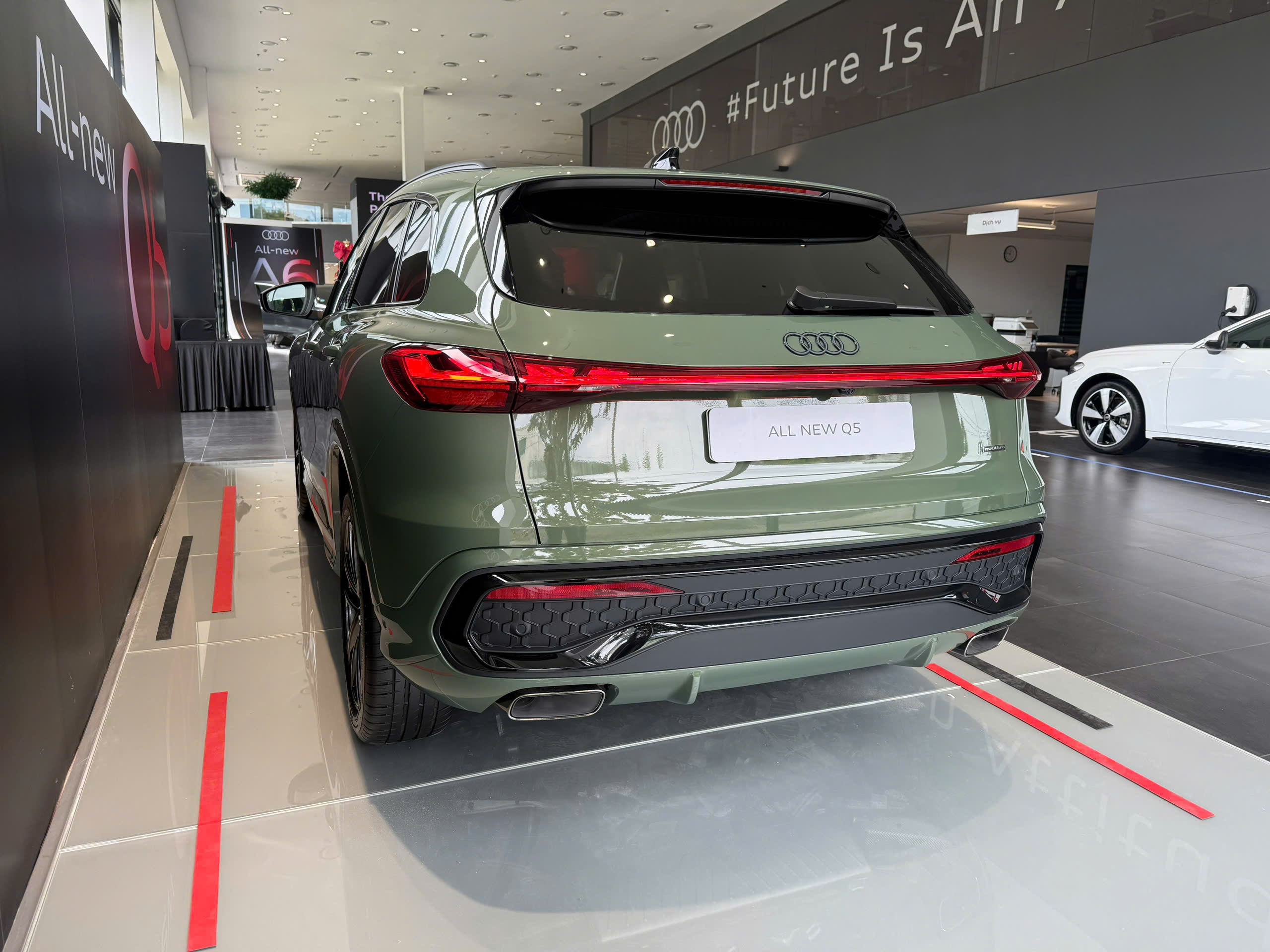 Ngôn ngữ thiết kế hấp dẫn của Audi Q5 mới mang yếu tố thể thao và thần thái tự tin. Với hốc gió cao cùng lưới tản nhiệt phẳng hình bát giác rộng kết hợp các đường gân dọc tạo nên một ấn tượng tự tin đặc biệt của chiếc xe. Ống xả hình thang, bộ khuếch tán với đường viền ngang mạ crom trải dài nằm bên dưới đèn hậu là sự hết hợp hài hòa nhấn mạnh bề rộng xe tạo nên thiết kế năng động.