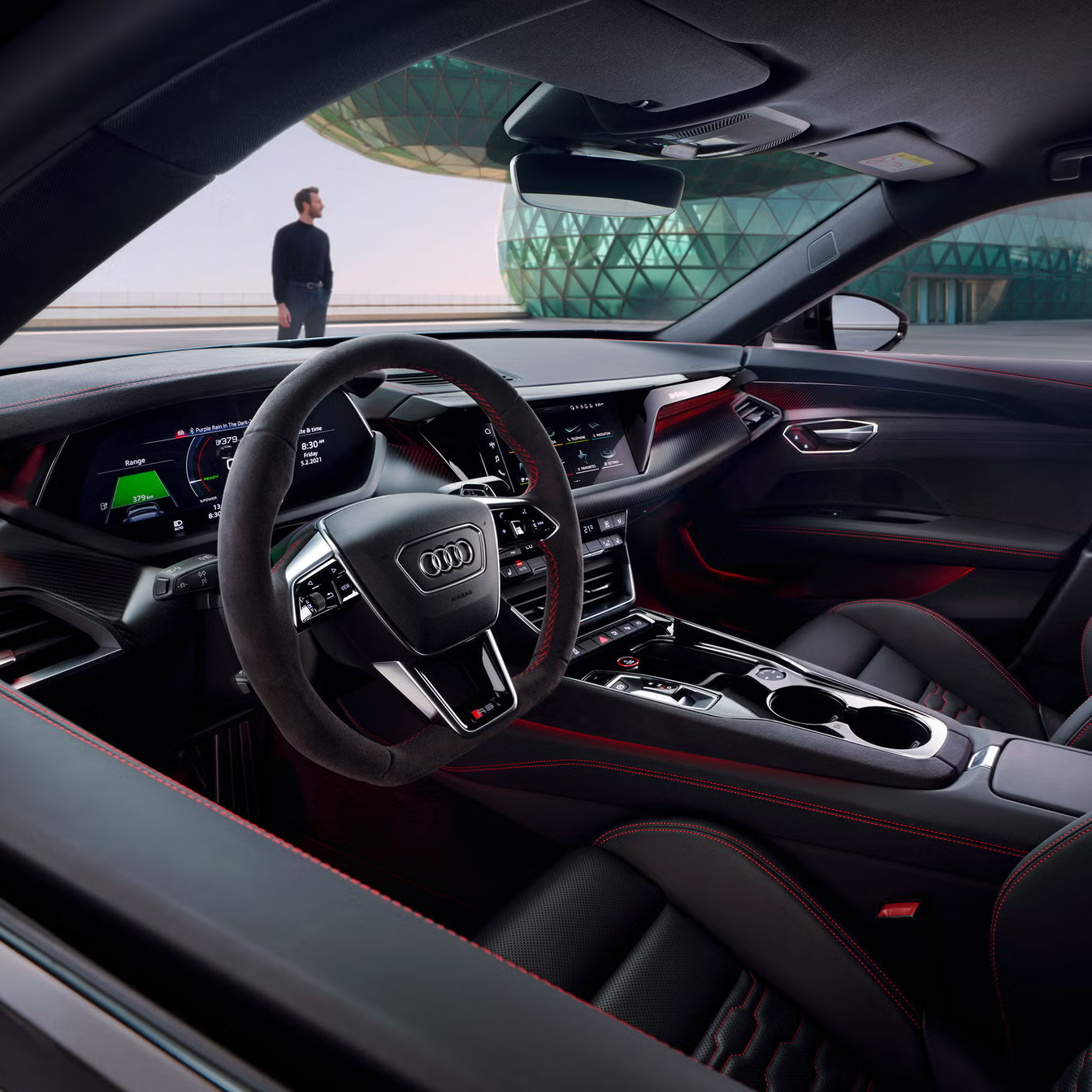 Mọi chi tiết thiết kế bên trong Audi RS e-tron GT đều tập trung về hướng người lái nhằm mang đến những trải nghiệm thuận tiện và tuyệt vời nhất.