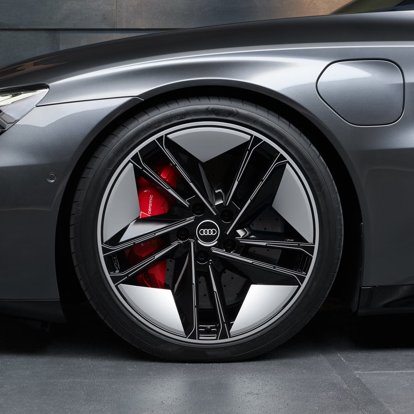 Audi RS e-tron GT đi kèm với bộ vành hợp kim 20-inch có thiết kế 5 chấu khí động học đầy phong cách. Bạn cũng có thể nâng cấp lên với tùy chọn 21-inch có thiết kế 5 chấu kép màu đen tương phản tạo nên vẻ ngoài thể thao hơn.
